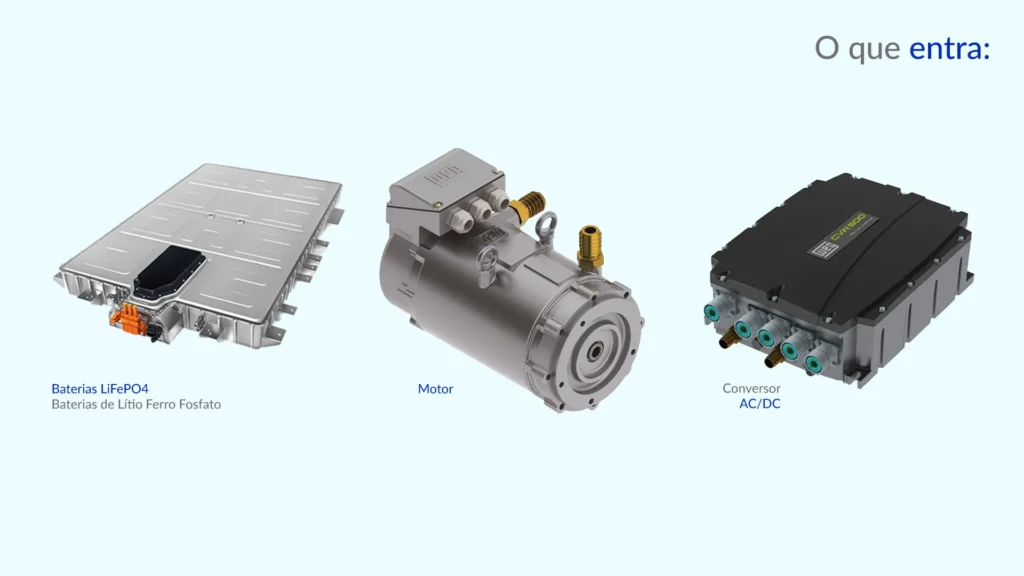 Transformamos veículos comerciais movidos a combustão em 100% elétricos, mantendo a estrutura do veículo, mas substituindo motor e componentes antigos por tecnologia moderna, limpa e eficiente.